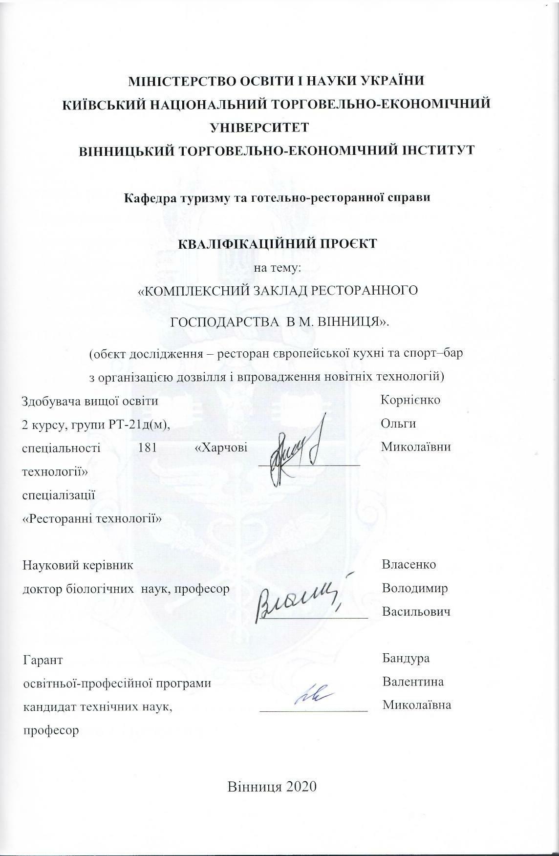 | Назва: | Комплексний заклад ресторанного господарства в м. Вінниця (об'єкт дослідження - ресторан європейської кухні та спорт-бар з організацією дозвілля і впровадження новітніх технологій) |