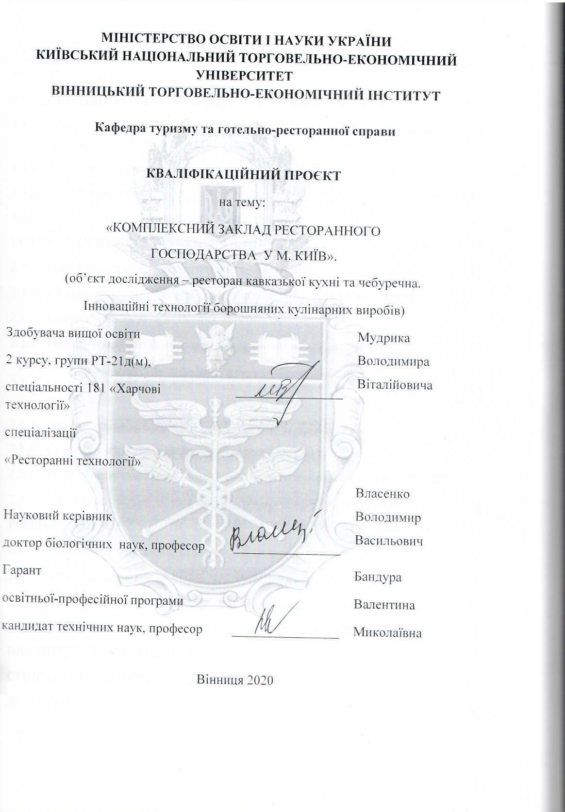| Назва: | Комплексний заклад ресторанного господарства у м. Київ (об'єкт дослідження - ресторан кавказької кухні та чебуречна. Інноваційні технології борошняних кулінарних виробів) |