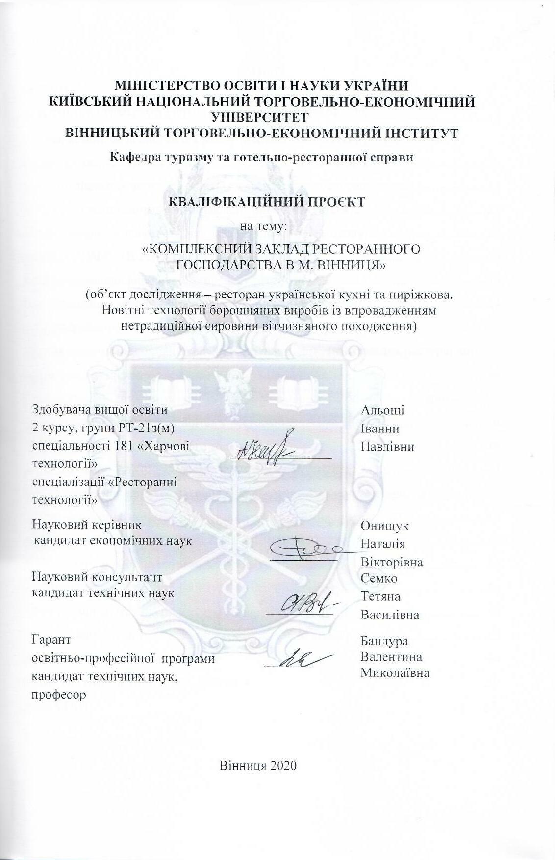 | Назва: | Комплексний заклад ресторанного господарства в м. Вінниця (об'єкт дослідження - ресторан української кухні та пиріжкова. Новітні технології борошняних виробів із впровадженням нетрадиційної сировини вітчизняного походження) |