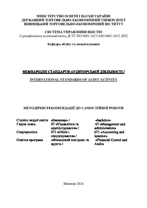 | Keywords: | міжнародні стандарти якості аудиту, аудит фінансової звітності |