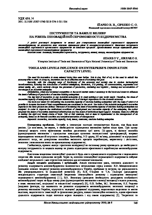 | Назва: | Інструменти та важелі впливу на рівень інноваційної спроможності підприємства = Tools and levels influence on enterprise's innovation capacity level |