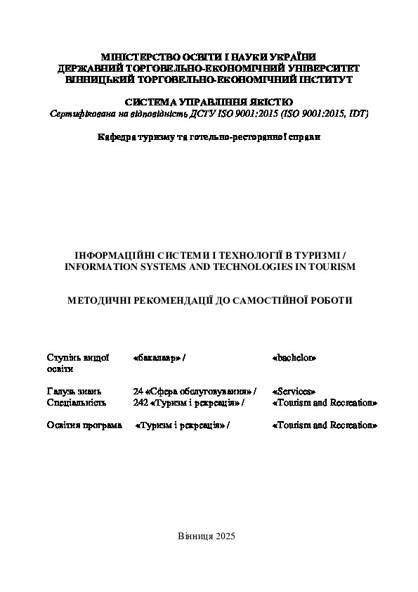 | Назва: | Інформаційні системи і технології в туризмі = Information systems and technologies in tourism |