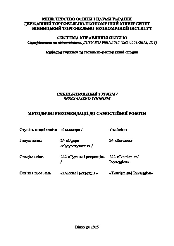 | Назва: | Спеціалізований туризм = Specialized tourism |