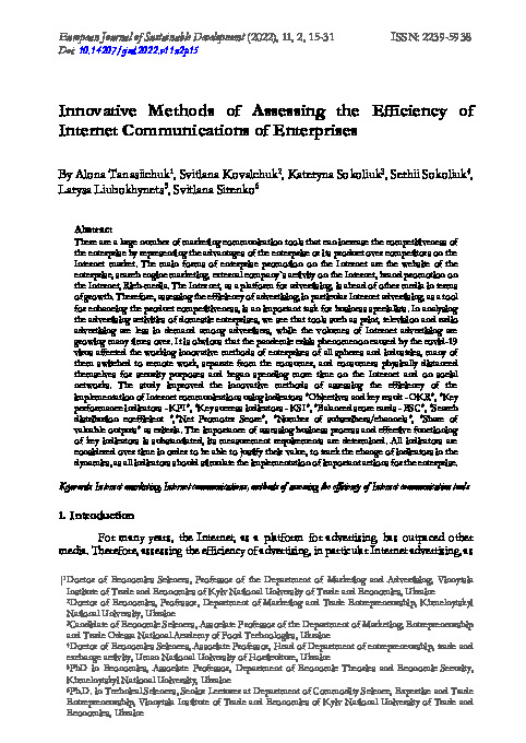 | Аннотація: | There are a large number of marketing communication tools that can increase the competitiveness of the enterprise by representing the advantages of the enterprise or its product over competitors on the Internet market. The main forms of enterprise promotion on the Internet are the website of the enterprise, search engine marketing, external company`s activity on the Internet, brand promotion on the Internet, Rich-media. The Internet, as a platform for advertising, is ahead of other media in terms of growth. Therefore, assessing the efficiency of advertising, in particular Internet advertising, as a tool for enhancing the product competitiveness, is an important task for business specialists. In analysing the advertising activities of domestic enterprises, we see that tools such as print, television and radio advertising are less in demand among advertisers, while the volumes of Internet advertising are growing many times over. It is obvious that the pandemic crisis phenomenon caused by the covid-19 virus affected the working innovative methods of enterprises of all spheres and industries, many of them switched to remote work, separate the consumer, and consumers physically distanced themselves for security purposes and began spending more time on the Internet and on social networks. The study improved the innovative methods of assessing the efficiency of the implementation of Internet communications using indicators "Objectives and key result - OKR", "Key performance indicators - KPI", "Key success indicators - KSI", "Balanced score cards - BSC", "Search distribution coefficient ","Net Promoter Score", "Number of subscribers/channels", "Share of valuable outputs" as criteria. The importance of assessing business process and effective functioning of key indicators is substantiated, its measurement requirements are determined. All indicators are considered over time in order to be able to justify their value, to track the change of indicators in the dynamics, as all indicators should stimulate the implementation of important actions for the enterprise. |