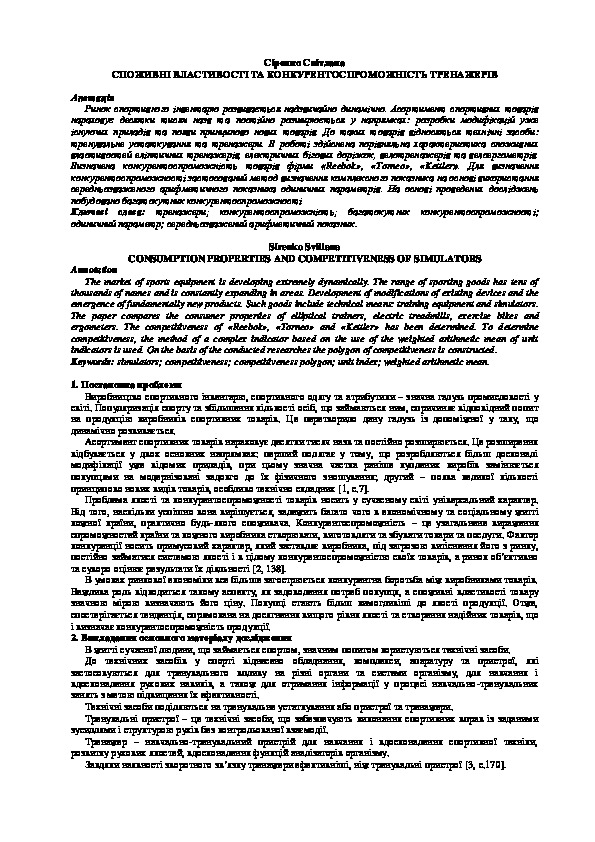| Title: | Споживні властивості та конкурентоспроможність тренажерів = Consumption properties and competitiveness of simulators |
