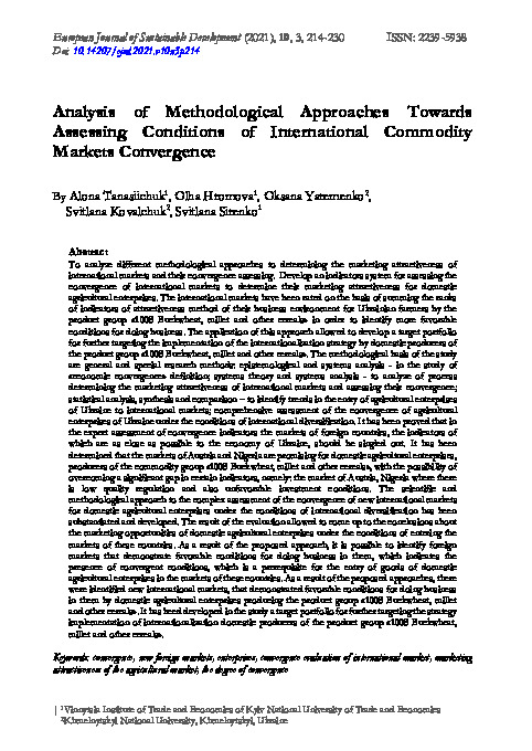 | Title: | Analysis of Methodological Approaches Towards Assessing Conditions of International Commodity Markets Convergence |