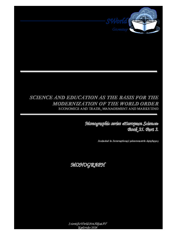 | Publication: | Science and education as the basis for the modernization of the world order `2024»: Monographic series «European Science»: col. mon. Karlsruhe, Germany. 2024. Book 35. Part 3. Р. 138-147. |