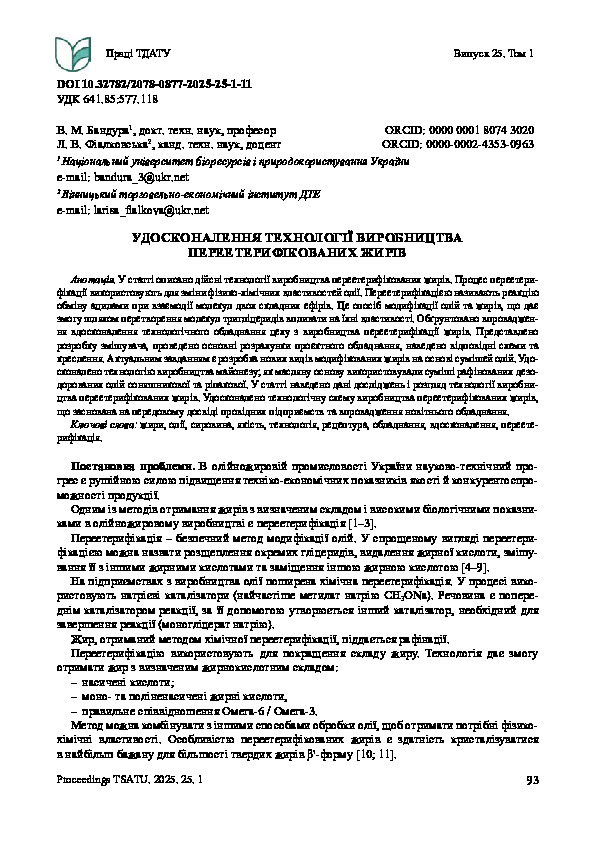 | Title: | Удосконалення технології виробництва переетерифікованих жирів = Improvement of the technology for the production of interesterified fats |