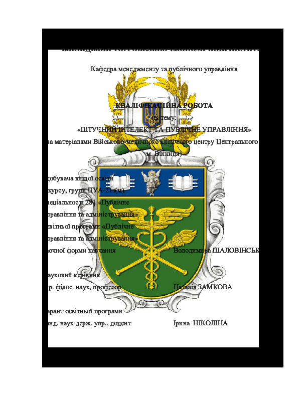 | Назва: | Штучний інтелект та публічне управління (за матеріалами Військово-медичного клінічного центру Центрального регіону, м. Вінниця) |