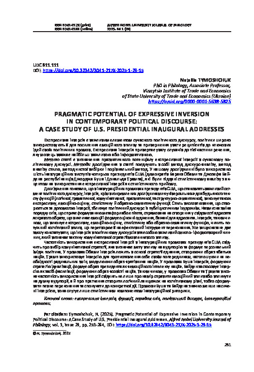 | Title: | Pragmatic potential of expressive inversion in contemporary political discourse: a case study of u.s. presidential inaugural addresses |