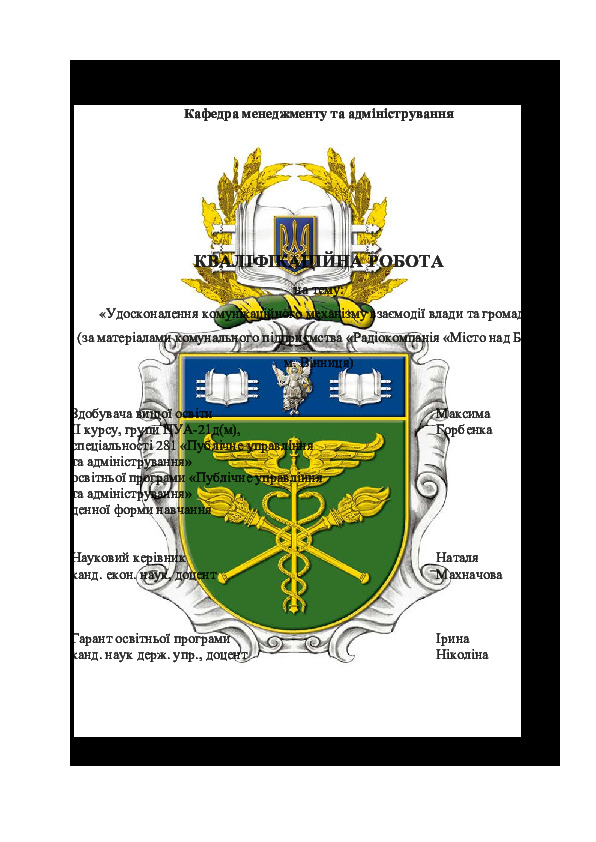 | Title: | Удосконалення комунікаційного механізму взаємодії влади та громади (за матеріалами КП «Радіокомпанія «Місто над Бугом», м. Вінниця) |