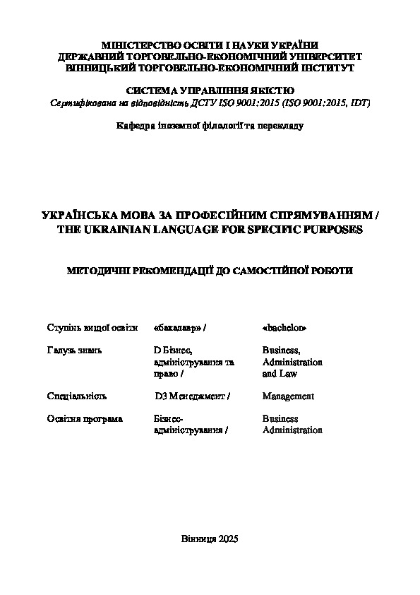| Назва: | Українська мова за професійним спрямуванням = The ukrainian language for specific purposes |