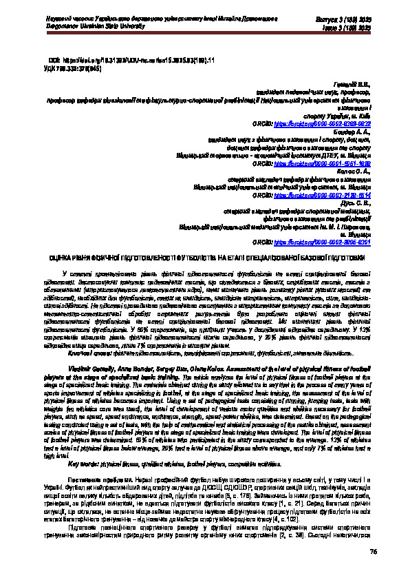 | Назва: | Оцінка рівня фізичної підготовленості футболістів на етапі спеціалізованої базової підготовки. |