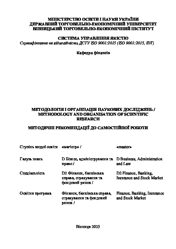 | Назва: | Методологія і організація наукових досліджень = Methodology and organisation of scientific research |