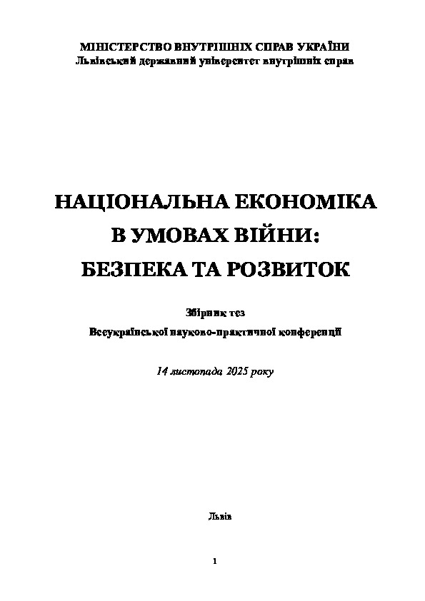 | Publication: | збірник тез Всеукраїнської науково-практичної конференції. 14 листопада, 2025 р. Україна. м. Львів, Львівський державний університет внутрішніх справ, 2025. С. 322–325. URL: https://drive.google.com/file/d/1C4DpokoCkd-ylRhcdwmshnHptakPGAyK/view |