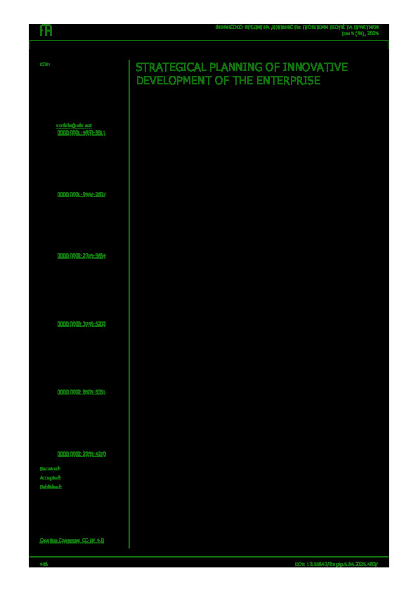 | Title: | Стратегічне планування інноваційного розвитку підприємства = Strategical planning of innovative development of the enterprise |