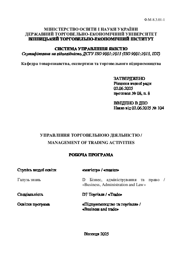 | Title: | Управління торговельною діяльністю = Management of trading activities |