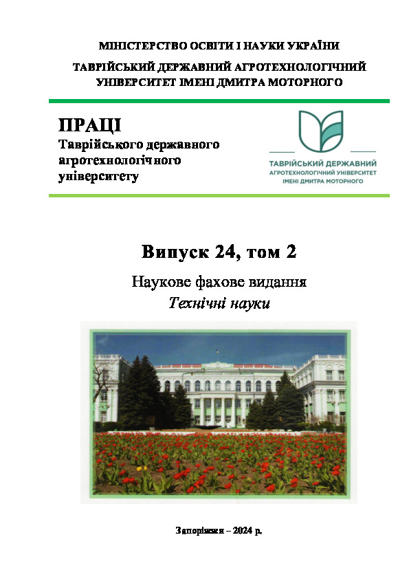 | Publication: | Праці Таврійського державного агротехнологічного університету: наукове фахове видання / ТДАТУ. Запоріжжя: ТДАТУ, 2024. Вип. 24, т. 2. С. 176-186 |